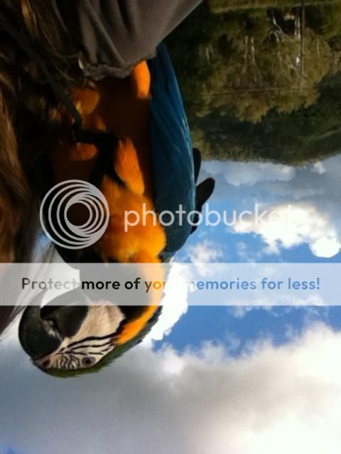 We went outside again, this time I let him on my shoulder and trusted him enough not to fly away, and he didn't