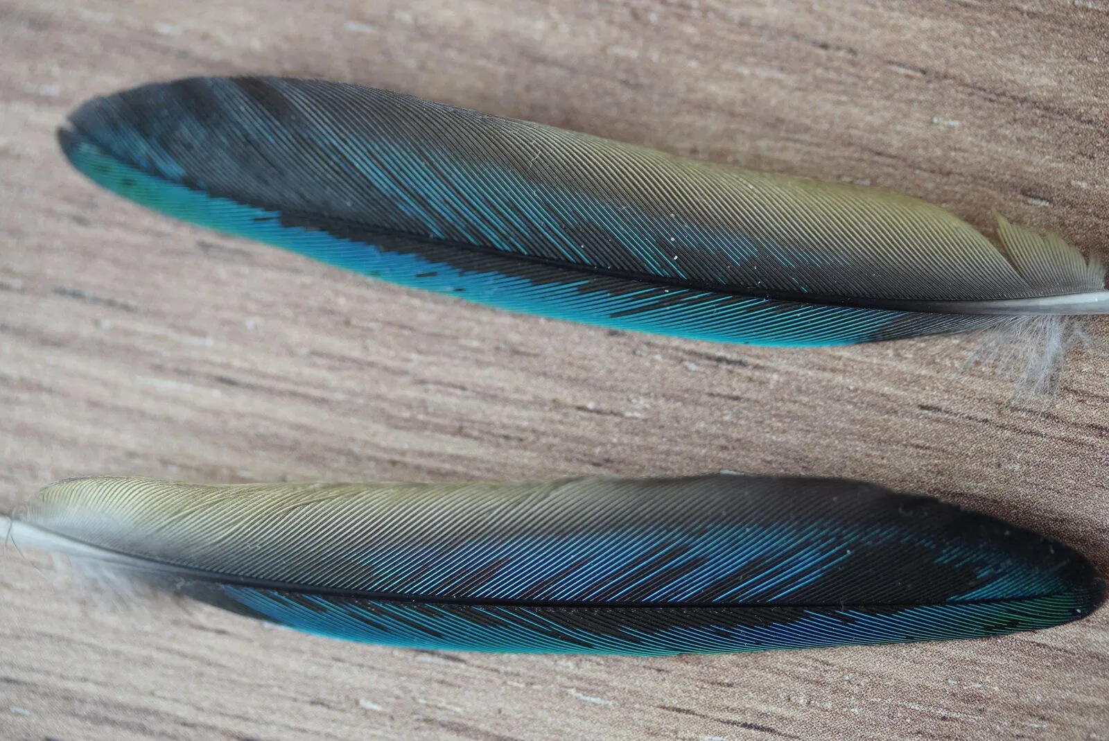Here is a prime example of discolouration due to bad diet, see how it goes from the shaft. (faded black tips on the wings is completely normal)