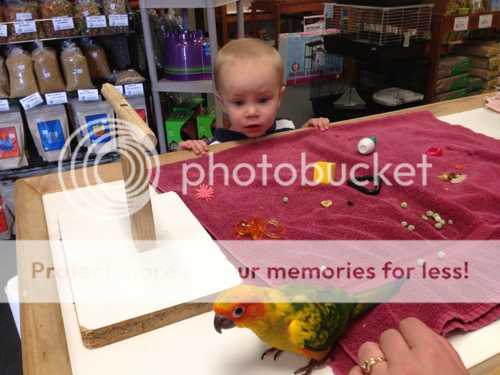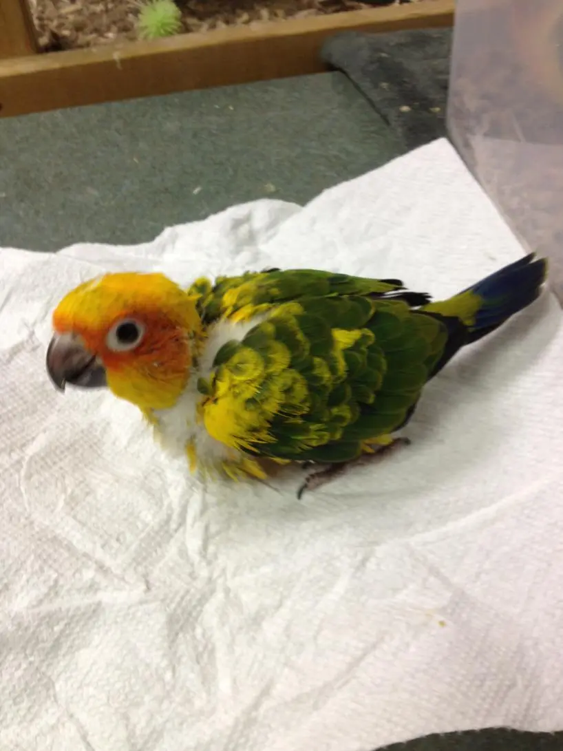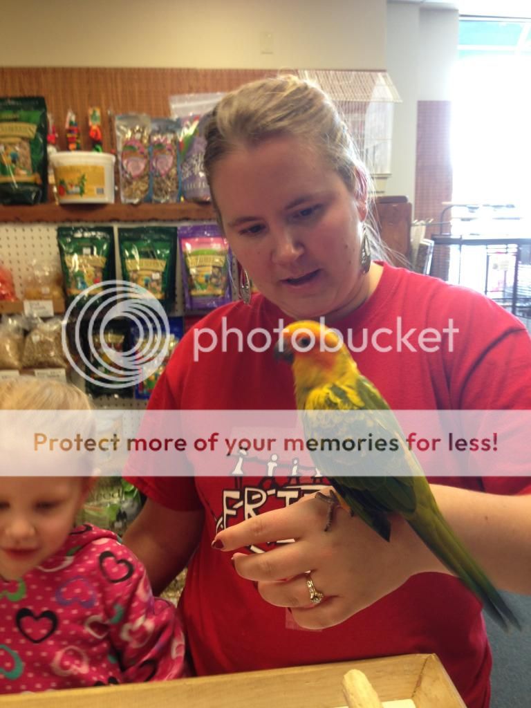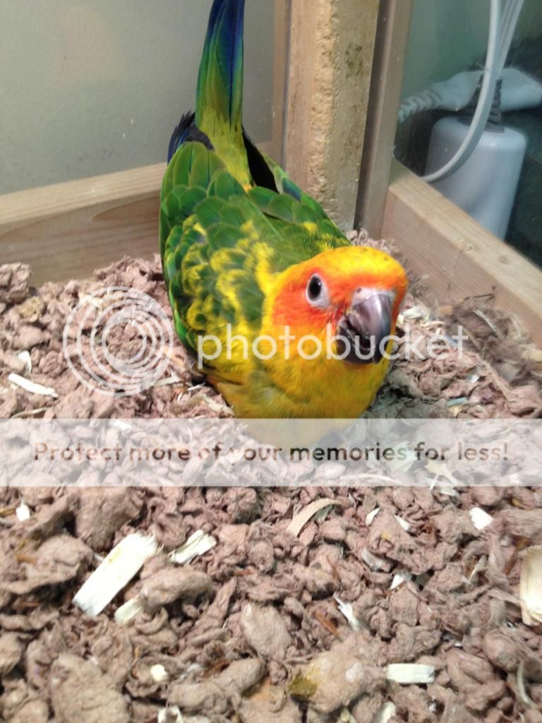 We have found our Sun Conure!! He/she was hatched about 4 weeks ago and is currently at a breeders near Cleveland. The timing will be almost perfect. The sun will be available for us to pick up right at the same time we will be selling cute little yorkie puppies! (taking deposits now if anyone is interested in pure breed yorkie pups!)(Shameless plug!!)