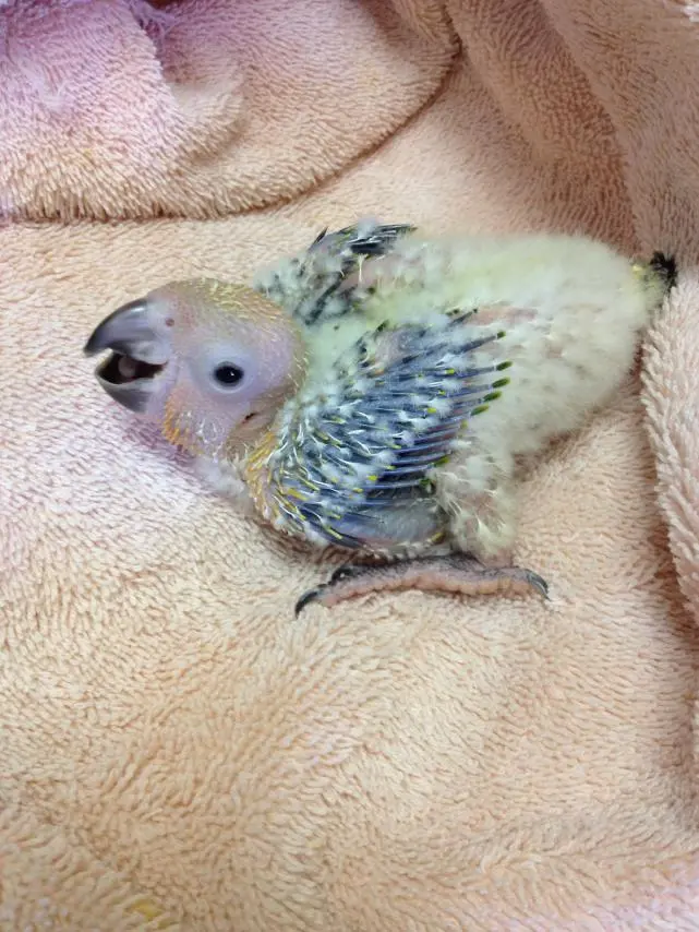 They sent the blood work today for the DNA sexing test. We should know by next week the sex and we will be able to choose a name. The workers are really great about keeping us informed of how the little guy is doing. We are dropping of an harness and they have agreed to start putting the harness on to get birdie used to it. Hopefully they will keep sending us pictures! Here are two pictures, one from a couple weeks ago and one from two days ago! So excited!