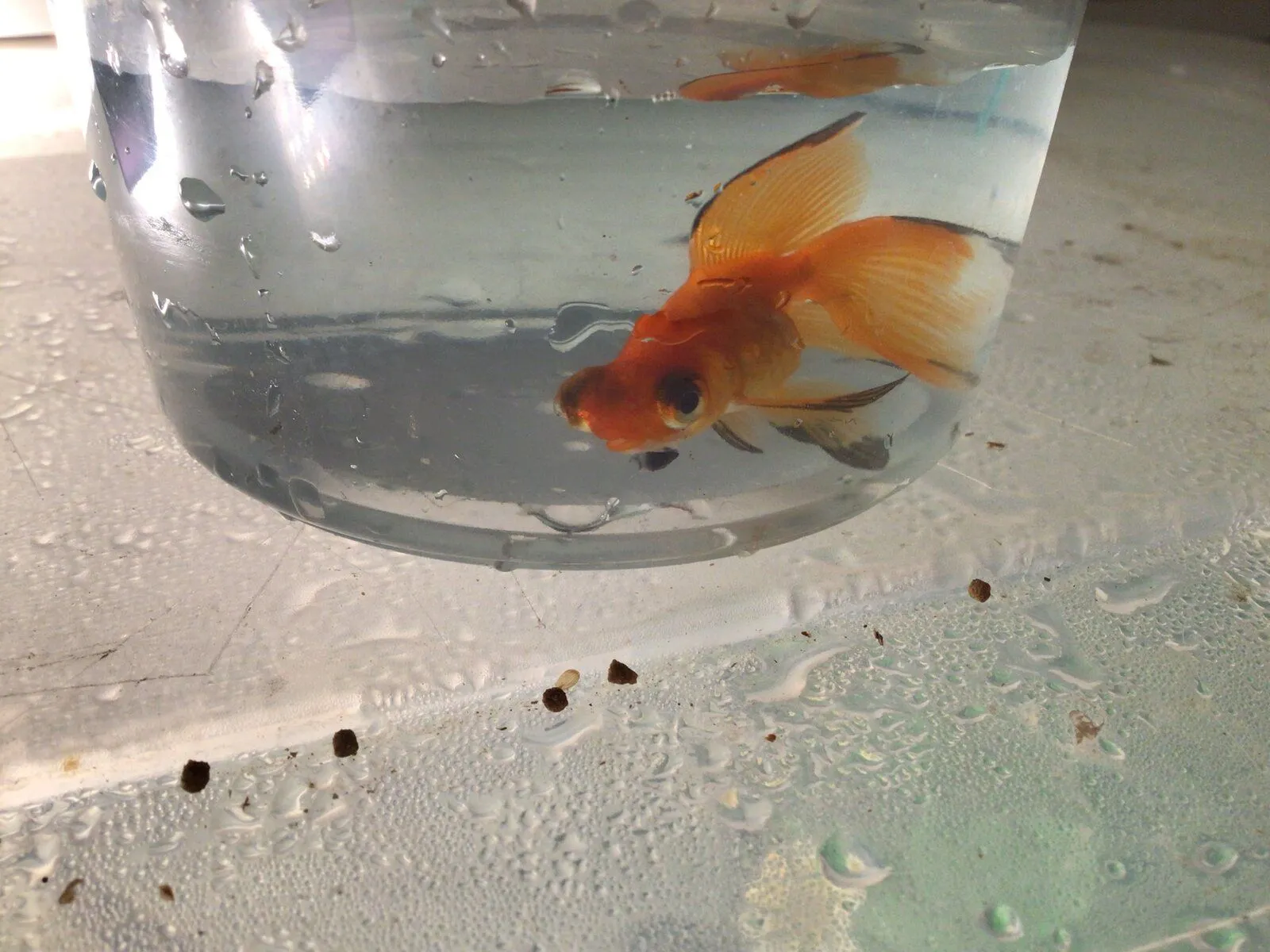 So as I was browsing my local pet store last weekend, I came across this little guy sitting at the bottom of the fantail tank. Turns out he's extremely inbred and severely disabled, and the pet shop was going to euthanize him if no one bought him and he didn't improve. So, I took him in.