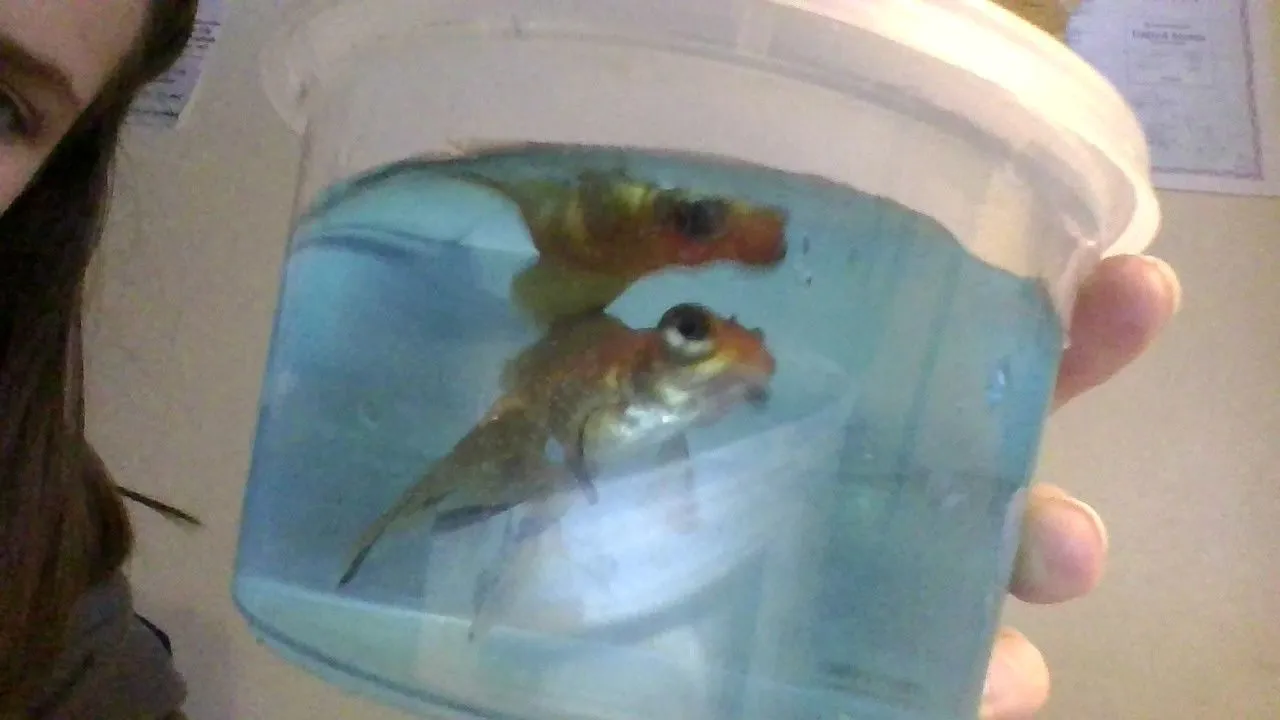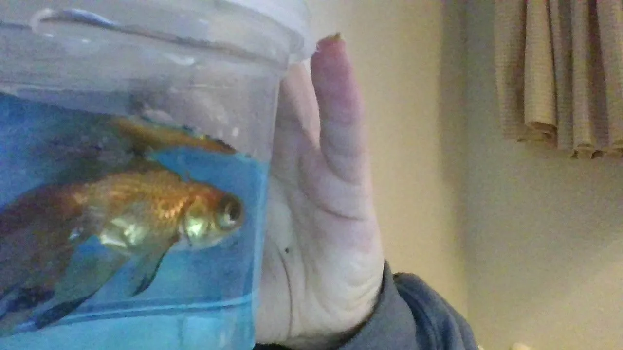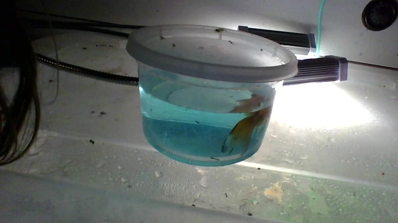 Now, he's doing very well! His tumor seems to be shrinking, and he even spent some time floating in a breeder box in my main goldfish tank (40 gallons), so he doesn't get depressed. And man, I love this little guy! He gives me so much hope, and is thriving in his new home! I hope he lives for many years to come.