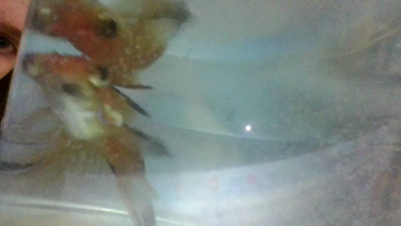In terms of infection/illness, he's EXTREMELY healthy. I mean, I have never had a fish as healthy as him in that way, not even my well-bred goldfish have been so healthy. He is super disabled, though. He has a fused tail, severe photosenstitvity (which I've never seen in fish), a curved fin, such a small inner mouth that I have to feed him baby betta pellets, a jaw that won't close all the way, and a large tumor on his chin that weights him down when he's not swimming.