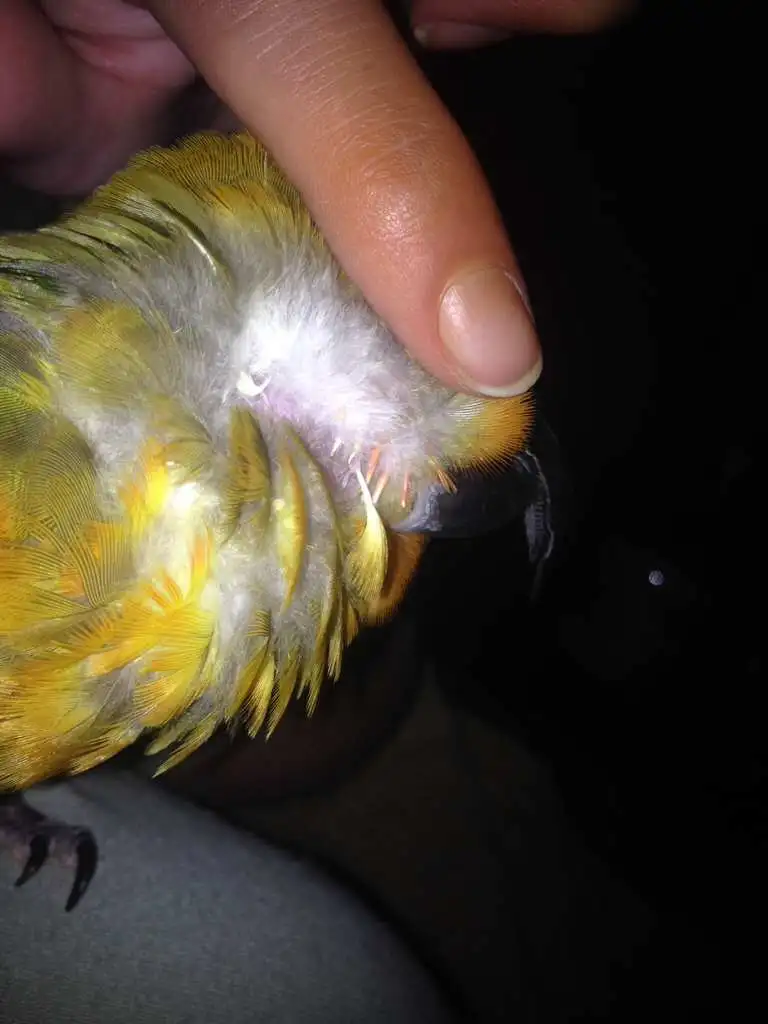 Well Rocka has started getting her new adult feathers and while rubbing her neck today I noticed she has a lot of pin feathers all around her neck, they look very uncomfortable. What's the best way to help her break them open?