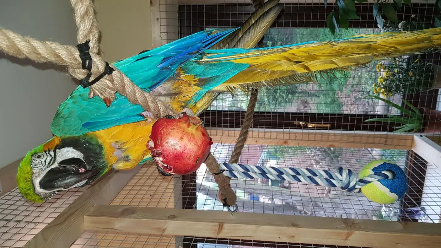 Built Monty (B&G) an indoor aviary in the spare room (8ftx7ftx6ft) and an building an outdoor aviary (50ftx30ftx60ft) however Monty can not fly or stretch his wings out fully so may never be able to fly