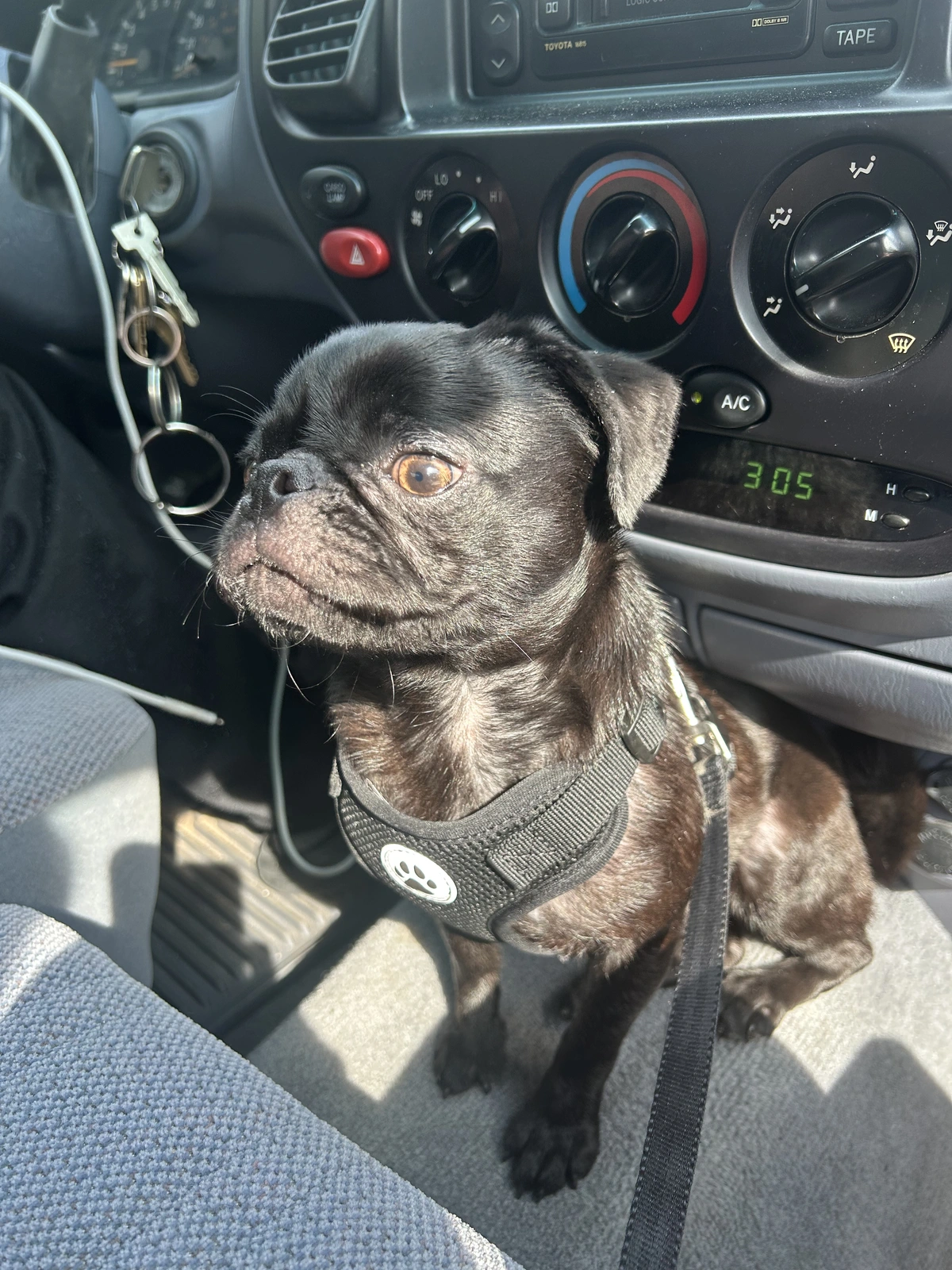 Our pug Max taking a truck ride