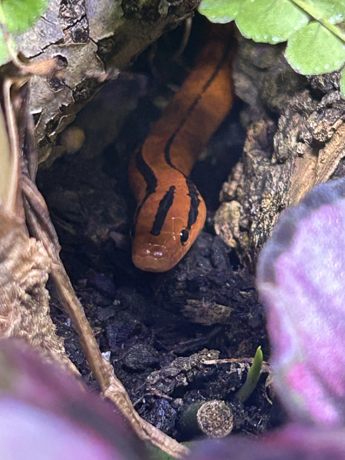 Our bamboo ratsnake Pumpkin peaking.
