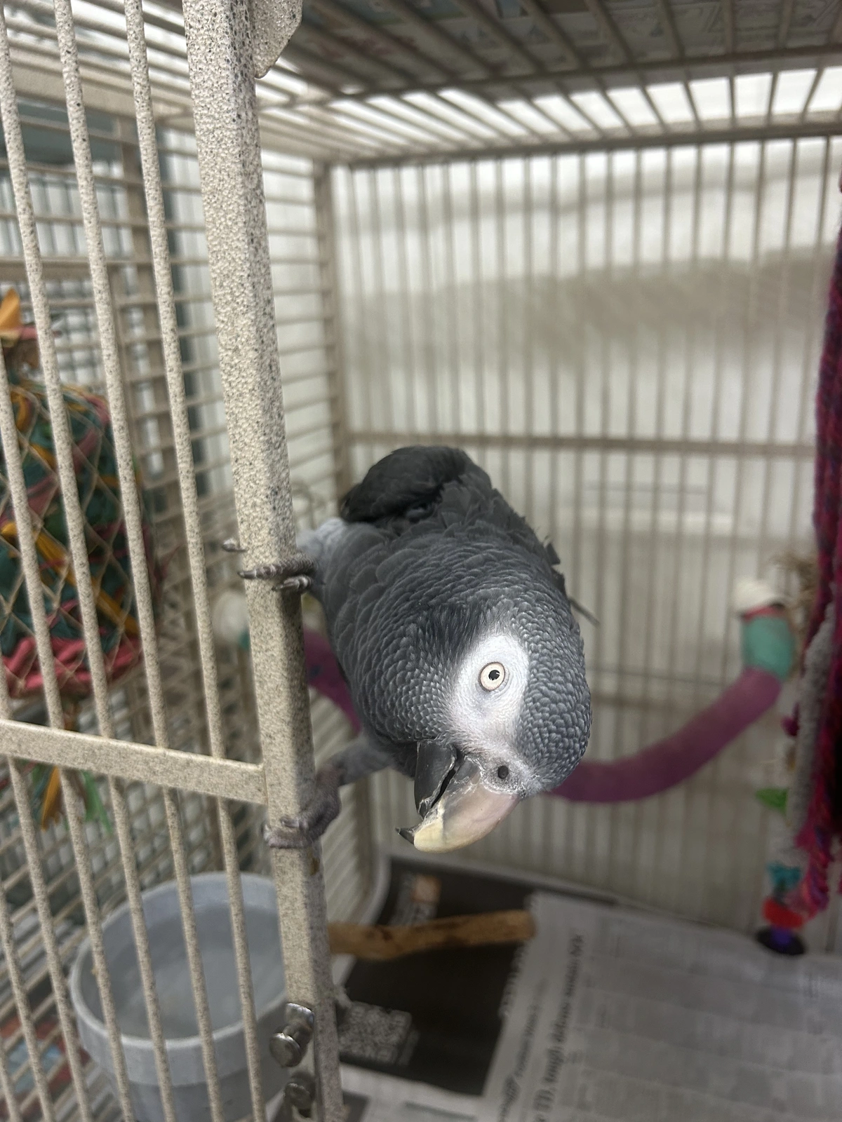 A female grey named Coco at the parrot rescue I volunteer at. I so want to adopt her one day!