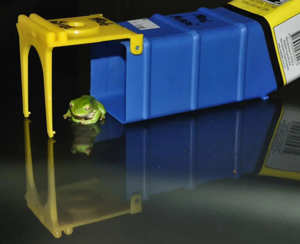 Anyway, we returned home, with the Grippers putting on weight like you wouldn't believe. The little devil continued using the frog chalet for the next couple of months, when I rigged it up out in a weather-proof enclosure outside.