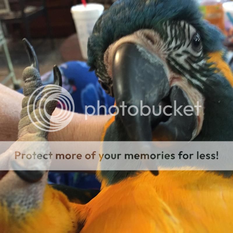 One thing I have not ever been able to get use to is their propensity to jump at the face and grab with their beaks. It is most nerve wracking when Valentino will be calmly chilling out with me and then suddenly jump at my face and grab my nose or the bridge of my nose along with that weird hissing sound of play they do. I can't help but startle EVERY time he does this so of course he LOVES doing it. I do find it rather odd he grabs the end of my nose and pumps it like its going to magically squirt formula for him. I can handle getting assaulted by the tongue but the face jumping I don't think I will ever get use too. I admit I do worry about sexual maturity and hormones so I discourage this behavior but so far have failed with success of stopping it completely.