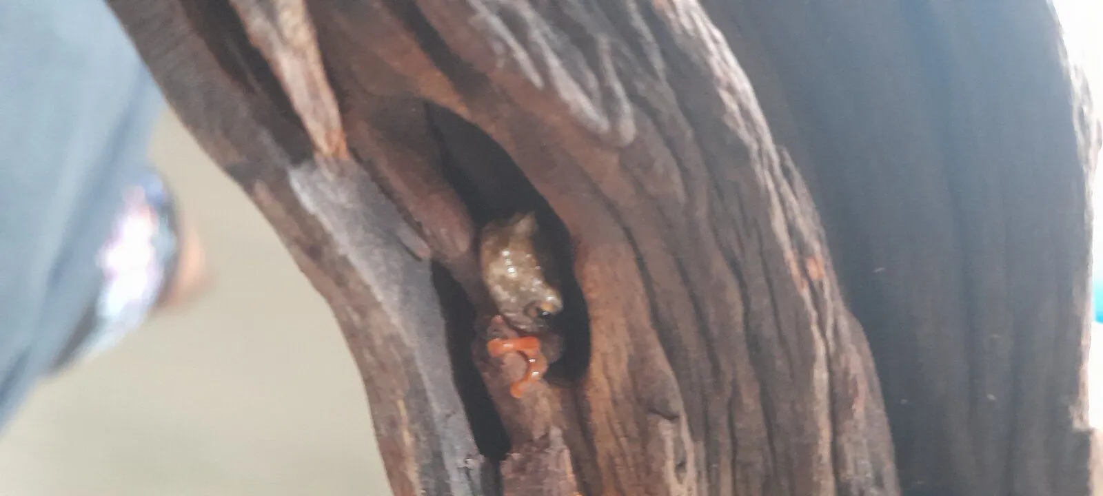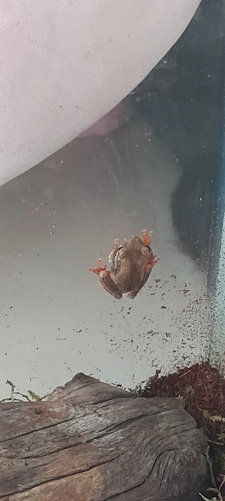 It's a painted reed frog. Not sure how the little dude got here considering the room is on the second floor?