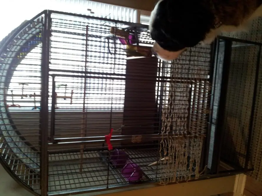 Hi. this will be my second official post here. I wanted to show off our new setup for Fruli- cheeky girl. We just picked her up this weekend from a breeder in Vancouver BC. Canada. She is hand fed. 2.5 months old. We had housed a cockatoo in this cage previously so excuse me if it seems a bit large. My MIL's Cockatoo sadly passed away a few months ago and she said we could take over her cage.. Cleaned it up.. Added some hand made purches. it seems a bit emty still because in our town there doesnt seen to be many places that sell bird accessories.. so we made do..