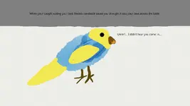 After I give him the first piece, he kicks it back or covers it with his tiny body before warbling for more. If I "find" the ball of bread and place it in front of him, he pretends to eat. But when I turn away, he kicks his bread back again (further) and chirps for more.