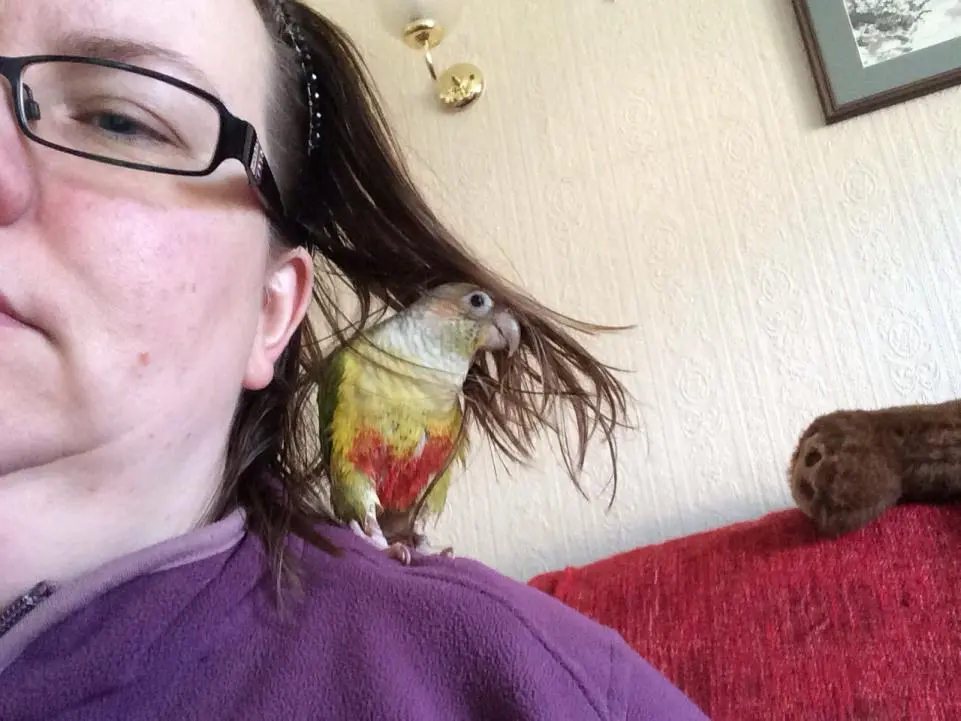 JasmineGCC New member Joined Oct 4, 2012 Messages 160 Reaction score 0 Location England Parrots Jasmine my pineapple green cheeked conure, hatched 17 April 2012 Feb 1, 2014 #1 Do your GCC love to play in your hair? Jasmine plays for hours!!!! Attachments image.webp 55.4 KB · Views: 292 Last edited: Feb 1, 2014