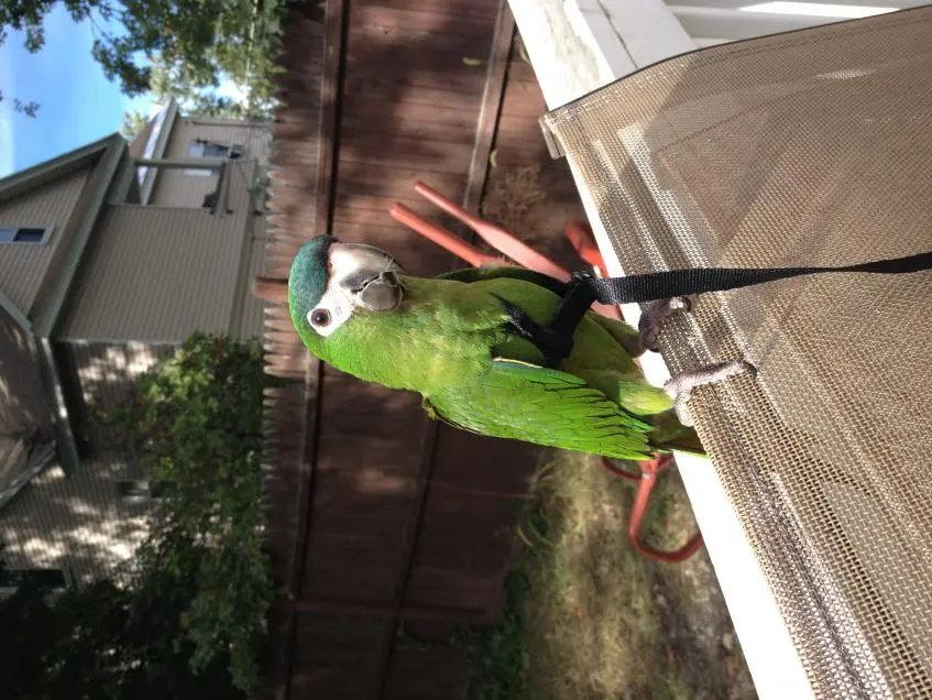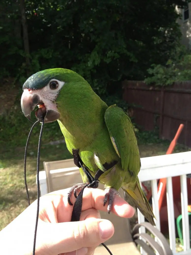 I have a baby, male Hahns Macaw named Kero. I have other birds and have tried the harness with them and it was a disaster.(following the directions etc) Tried with Kero yesterday and it went awesome! I put it on him today and besides chewing it a bit he was great and I managed to get it all the way on him and took him out to the backyard for a couple minutes. I didn't leave it on him long. I'm just very excited that it looks like he will let me use the harness with him.