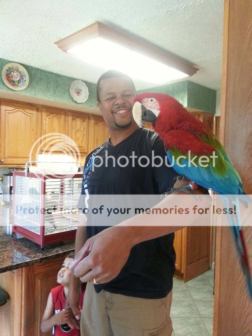 I'm also owned by a GW Macaw (+ 3 other parrots), and they, too can make EXCELLENT family members if socialized properly. My big red guy willingly goes to strangers without ever removing any limbs.![]()