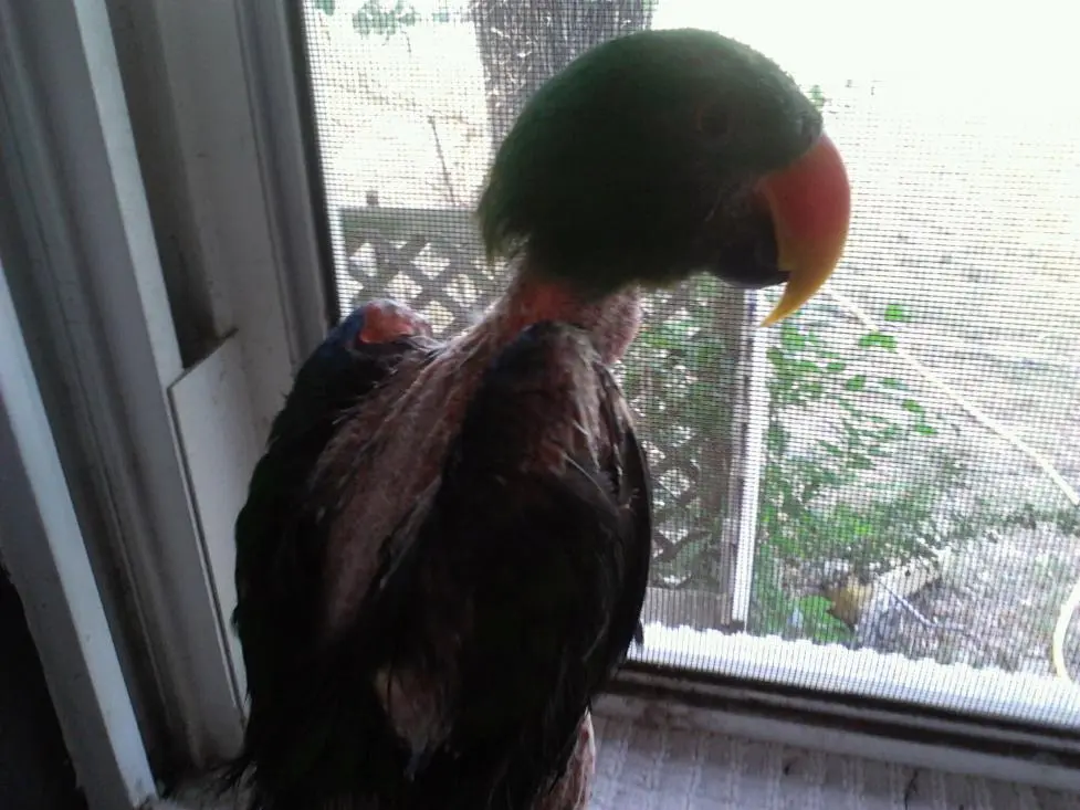Hello everyone! My name is Kristie and a couple of weeks a go I took in a Solomon Island Eclectus named Rhett. I have experience with Macaws Conures and Cockatoo's but not Eclectus. Any how, he is a plucker and I've never had a plucker before. This is a relatively new problem for him, as he never used to do it. This is also why I now have him, I can provide an environment that is very stable and stress free. His plucking has gotten better, but it hasn't stopped so I think at this point it's more habit than anything else. I was told by a bird expert not to put a collar on him, and I want to stick with that advice. In the meantime, does anyone know of some things that will help? I have been bathing him in water mixed with Aloe Vera Juice to help sooth his skin.