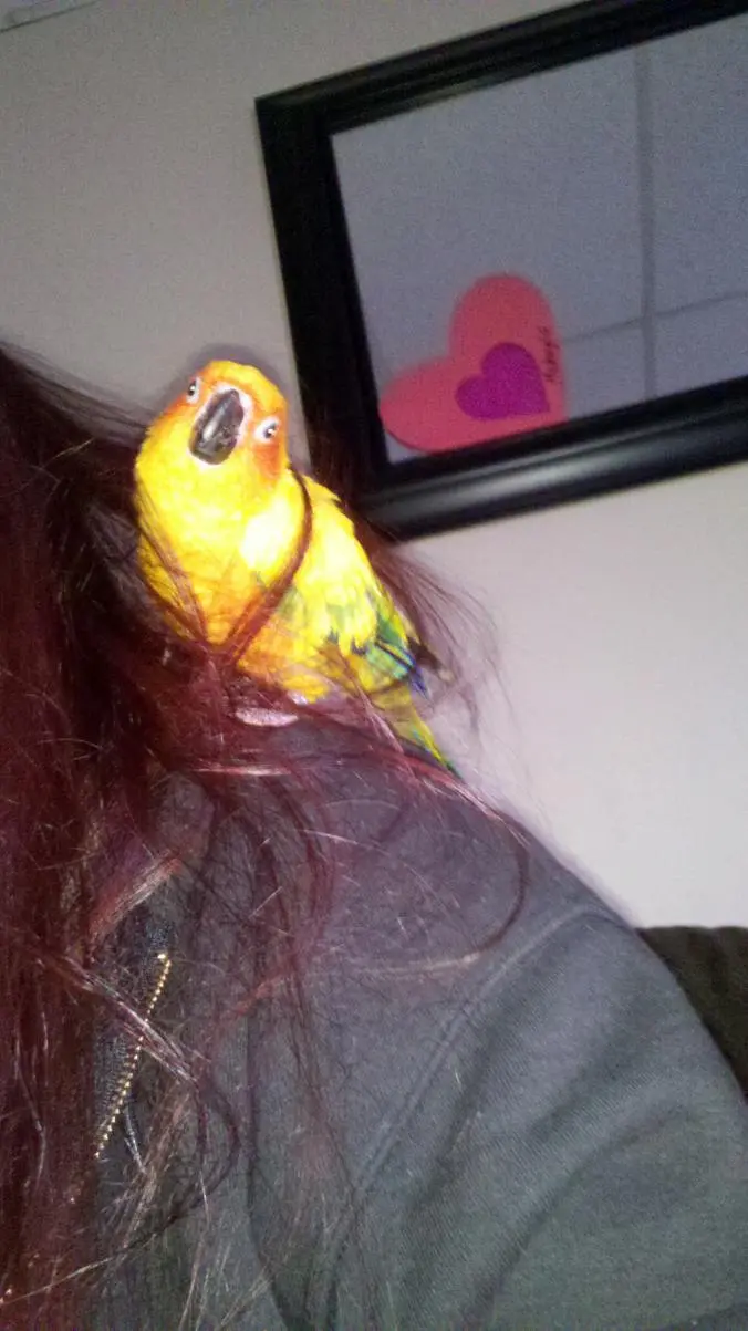 Hello my name is Mel & I have 3 birds in my family witch is part of my small zoo.. lol j/k I have 1 Sun Conure, 1 Green Cheek Conure & 1 Catalina Macaw. I have posted pictures of Skittles the Macaw & Loopie the Sun Conure.