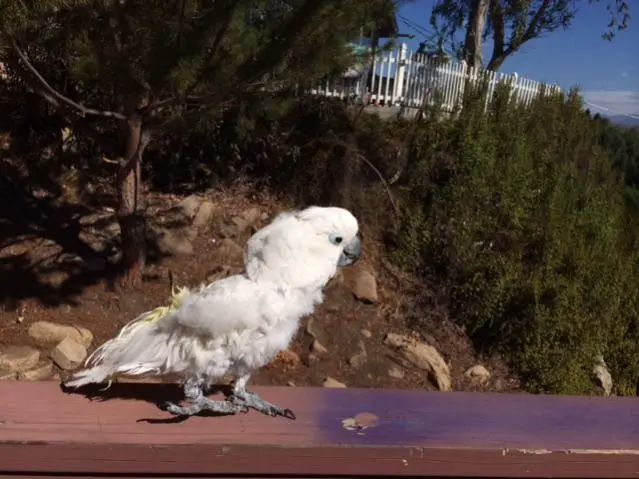 Hi Me And My wife Just got an 8 year old umbrella Cockatoo named Mya. She is extremely friendly but has a habit of pacing back and forth. Even when i take her out of the cage she will pace up and down my Arm. I was wondering if that is normal? Also she has started plucking. I was told by the owner to leave her for 1 week to get adjusted to the new surroundings. Is that true? Cause she screeches like she wants to come out of the cage. I was told that she loves peanuts and grapes. But when i try to give her one she just drops it. I just hope it is nothing i am doing wrong?