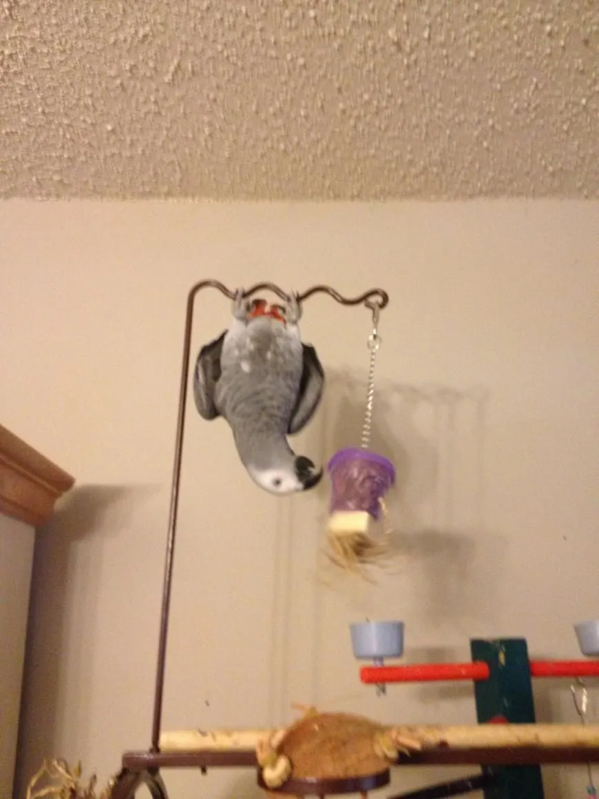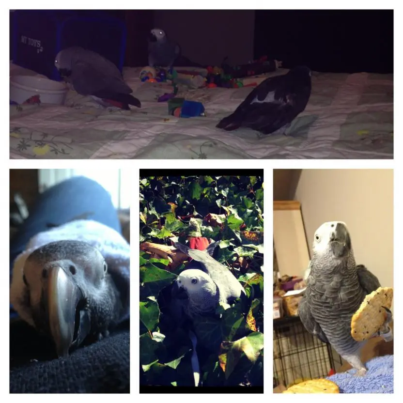 I am not really new but I haven't been on in about a year. I came on when I first got my little 4 and a half week old Grey. Well somehow I lost my login and haven't been on in a long time but I thought I would reintroduce myself as a lot of things have changed. I have my sweet baby and she will be a year old in just a few weeks, and yes we found out she is a she. She has been such a joy and has recently started talking. I also rescued two other greys in September. We got Kiwi who is another CAG. He is a male and 9 years old. He has fallen in love with my husband and has been doing great here. We also got Cookie who is an older special TAG. She has several issues which I will go ahead and share so I don't forget. She has a deformed foot, missing toenails, is blind on one side, she also suffered a wing injury before she came to live here that left her unable to fly. This injury caused her to pluck which she is currently in recovery and isn't showing signs of plucking. This plucking also cause an issue with scar tissue under he wing which rips when she tries to fly. She has had a tough life and is living it up as a princess now. She has gained 40 grams since coming to live here. Kiwi and Cookie came from the same home and were both on a wild bird seed diet when they came but have both taken to a healthy diet and are excelling here. Pictures to come in the following posts.