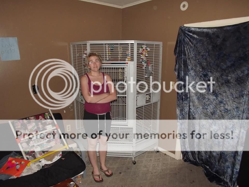 Marley the grey is also 13, he's a plucker, his previous owners kept him covered during the 8 years that they owned him. now he has a HUGE 6ft tall corner cage with lots of toys and attention and GOOD food.