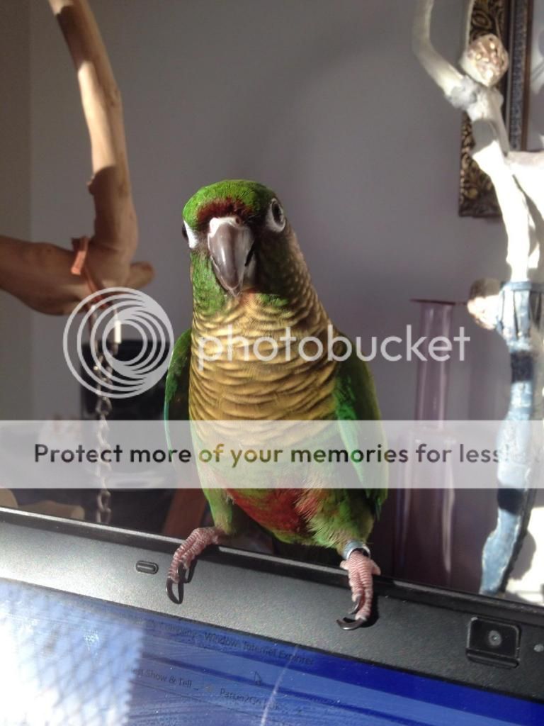 Percy is our only bird and has been with us for just over a year now. He had been in the shop on his own for appx 2.5 years. He is my buddy - I love him immensley and would not like to be without him.