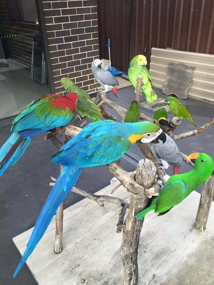 Hi, I am from Australia and I own a few different birds. My parents in law live next door and we share our back yard. I have attached a photo of all the birds we love and have.