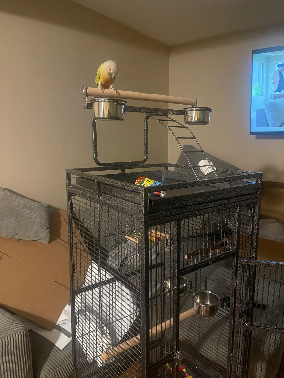 Iāve had my current conure for almost 6 years now, while their original cage was small it was more used for them to sleep or just hang out for a bit while I was out since they got more outside cage playtime than anything. Recently because Iām getting closer to graduating from college Iāve had less time to be at home and most of my family is rather scared of my bird biting them so my little baby would have to wait until I got home from long classes so I could let them out. My dad currently watches over them too and lets them out for the day but of course thereās times where work is taxing on him and we get home around the same time.
