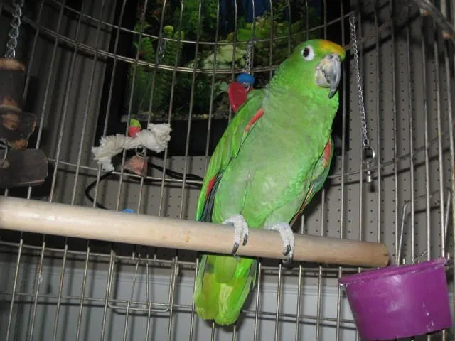 Thank you everyone for your responses. Yes Poncho needs a lot of new things and he will get all of them. I have had him a week today and did not want to moves things too fast. As stated in my post Poncho was rescued. The woman was very much afraid of him and would push him to the back of the cage with a broom handle so that she could feed him. Most of his life was spent in a basement where he was feed just once a week. He has a terrible scream which sounds like a smoke detector going off, but I can work with that. He has been on a seed diet only, his entire life. I have introduced pellets into his seed and hopefully he will accept them. I have also been given him many fruits and vegetables, which he loves very much. You cannot imagine how good I felt when last night, after 6 days in my home, he fluffed up pushed his head to the cage and allowed me to scratch his head. Thanks again everyone for your kind words and suggestions for improving Ponchos life.