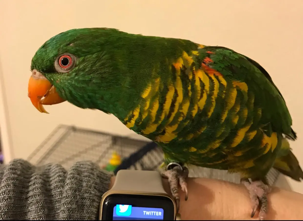 Hi! On Tuesday, my daughter spotted this bird near the door of Chick fil A, and it ended up hopping down the sidewalk to our car as I was ordering...and then when I opened my door, it hopped right on my hand and the rest is history. We’ve contacted all of the shelters and lost pet websites, and have an appointment with an avian vet next week (surprisingly hard to find!). In the meantime, I was hoping someone could tell us what kind of bird this is. It’s about 8” from head to tail. We’re feeding it a mix of seed, pellets and veggies and fruit (loves bananas!), and try to give as much social time and handling as it likes (very happy climbing all up and down my arms and shoulders).