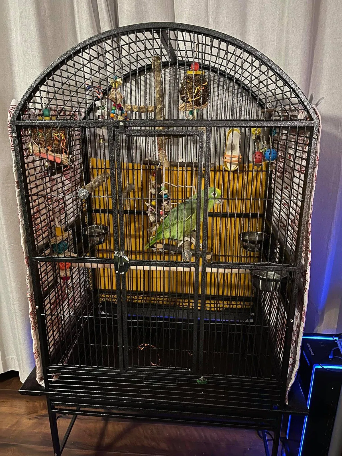 For example, big cage is fine for tamed birds, they will come out when called. But not good with untamed birds, since they get caged bound easily. (Bird's mind may be saying, "big cage has every comfort, why risk going out?") So it's best to start the untamed in smaller cage with favorite toys, which later get moved outside the cage, to encourage the bird to come out to play with her favorites.