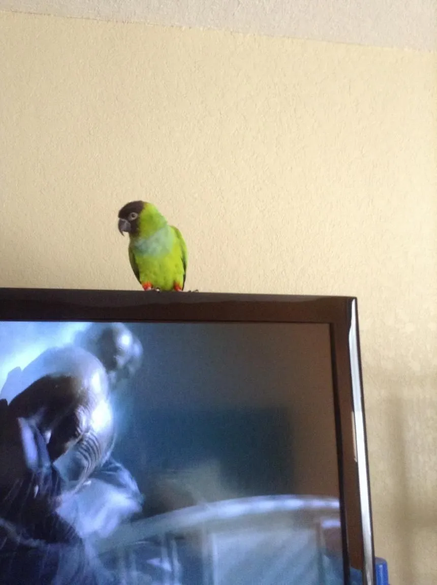 So I've been on this forum for about two weeks and I'm finally getting around to this! I recently moved to Florida from Washington State and its amazing here. I have a Nanday conure named Rio and I love him to pieces. I've had parakeets since I was five years old and after they passed away I decided to take the jump to conures. I knew I wanted to rescue a bird instead of getting one from a breeder because there are just to many that need good homes. I found Rio on Craigslist(his name was Conure West) but he never really acknowledged that name so I figured he wouldn't mind a new one. The craigslist ad said rehoming fee of $200 which includes the bird, cage, food, bedding, toys, and perches. I thought I was getting a good deal until I got there. The woman that had him should be banned from ever having another pet anyways. The conditions I found my sweet bird in was terrible. He was outside in a nasty flimsy ferret cage with bars that were way to wide. He had cedar shavings on the bottom of the cage with a fire ant hill living with him. And if you have ever been bitten by fire ants you know how horrible and dangerous that is for a bird let alone a human. I don't think the cage had been cleaned in weeks. It's smelled of old rotting bird poop. The perches he had in his cage were either all chewed up or covered in bird poop. The toys had bugs and fire ants all over them. The extra bedding she wanted to give me had even more fire ant hills inside of it. I ended up telling her to keep the cage and everything in it. I didn't even mention the bedding because there was no way I was taking that to begin with. I got Rio in the carrier and just handed her the two hundred because at that point I just wanted to get out of there. By the looks of her I'm sure it went straight to her drug habit. She came running out with a garbage bag full of bird food that she assured me was inside and perfectly fine. So I just threw it in the trunk. I drove straight home and got the bird inside and put him in an empty room(still in the process of moving so hadn't unpacked things for that room). Then I went out to the car to throw the bird food away and to my surprise when I opened the trunk little black bugs(I think they were seed Beatles or something) crawling all other the bag and trunk. I threw the bag away and cleaned the trunk as best as I could. I ended up buying everything brand new. Now I have a happy talkative bird. I'm still trying to expand his diet but he's getting better everyday. He won't let me hold him yet but he's always walking up to me. I have no idea how old he is. The lady said 18 months but I'm not sure about that. She lied about plenty of other things. I don't know how she treated him. He does talk but all he says is shut up. I'm working on pretty bird and I love you because it breaks my heart when he says the words he does know. He's in the living room now so he's always in the middle of things. His favorite thing to do is scare the crap out of my mini schnauzer. He thinks it's hilarious. I'm still learning new things everyday about him and I'm just glad that I can give him a good forever home for the rest of his life.