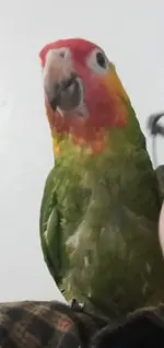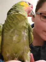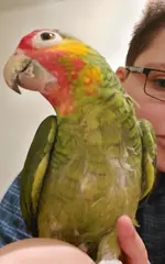 A few years back we were given a red-lored amazon and she's been living as a seed junkie in a small cage, I've always felt bad about her since she hasn't been out of there since I can remember so the past few months I've been building trust with her and last week she let me take her out of the cage (she's even afraid of perches because my grandmother used to poke her with a stick as a way to get back at her for biting).