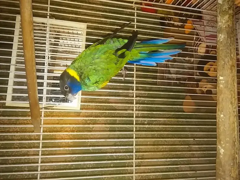 Ryder is a very intelligent bird who's pretty cage territorial. He's learning step up onto a perch and has learned a few new whistling tunes the last couple weeks.