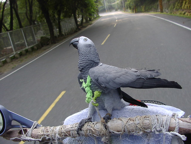 This is a love story of me and my Tinkerbell, a free flying Congo African Grey parrot CAG , as we roamed about the mountains and forests and cities of Taiwan. She loves to go riding with me on the motorbike as she sit on a perch on the handle bar.