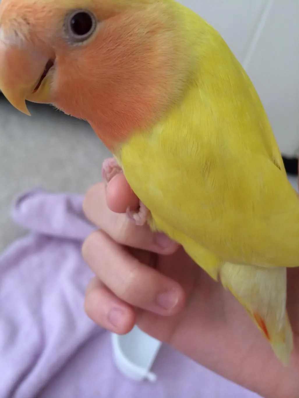 Hi, my username is Lovie. Last week, I bought my first bird. It's a less-than-three month old lovebird. We haven't been to the vet, yet, but I'm about to try to make an appointment for next week. My birdie is still young, so it bites and squawks a lot. We're still training it. It's hard because I'm really busy in school and my parents work, so we're not around for about nine hours every day.