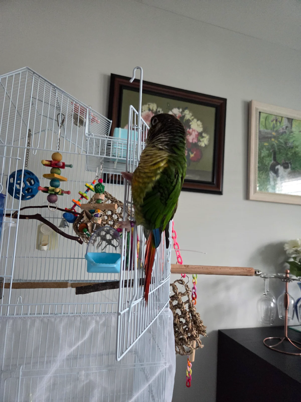 I bought my first conure from Petco, she is a green cheek. I used to have cockatiels. She is a lot different from a cockatiel. I'm trying to get advice, and tips. She bites A LOT and screams. She will sit on my shoulder and walk around with me, she talks a little, likes to play with her toys. I just can't figure out why she bites so much and seems angry.