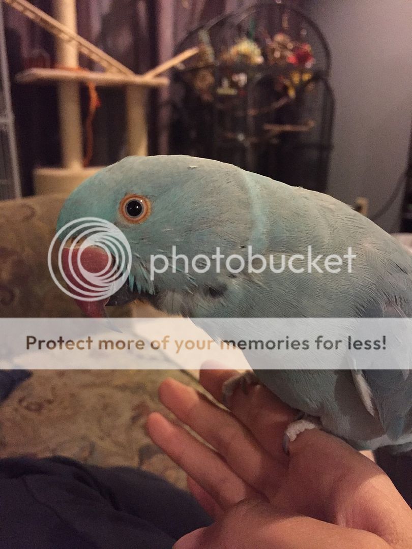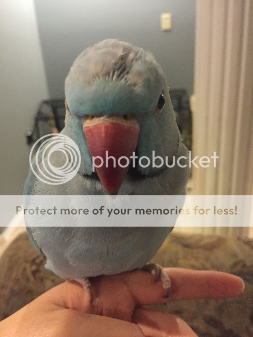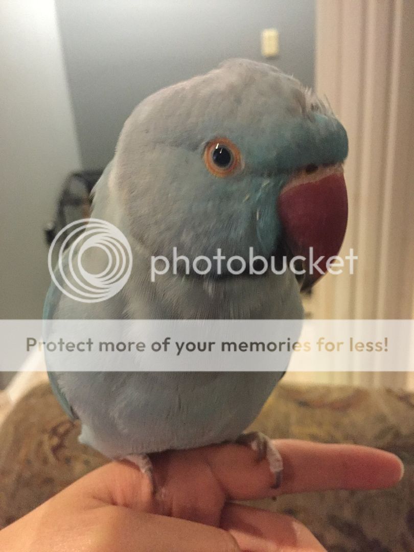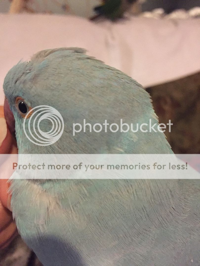I'm so excited! When I came home today, I saw his first couple of black feathers showing! My little boy is growing up. He's just a month over a year and a half now, so I'm actually quite surprised his ring is coming in so early. But very, very ecstatic! He's going to look so handsome [emoji3]