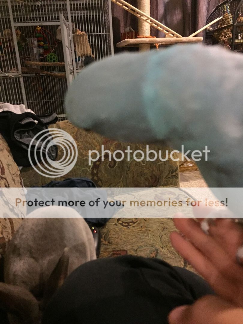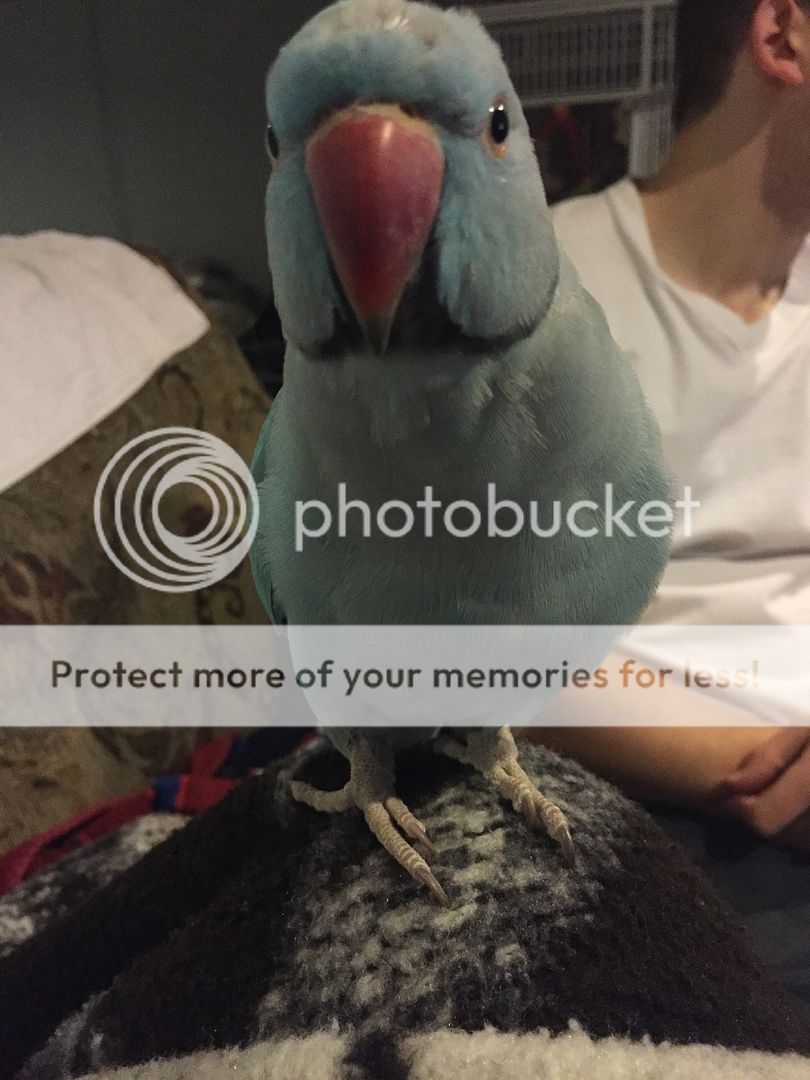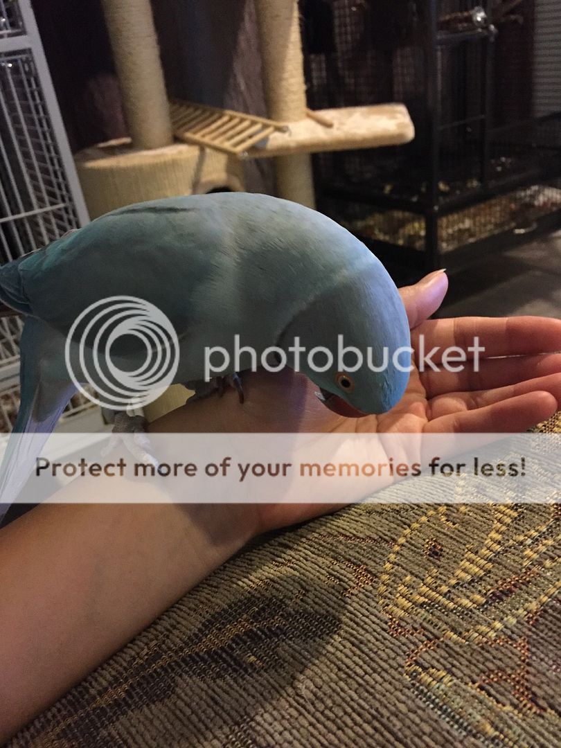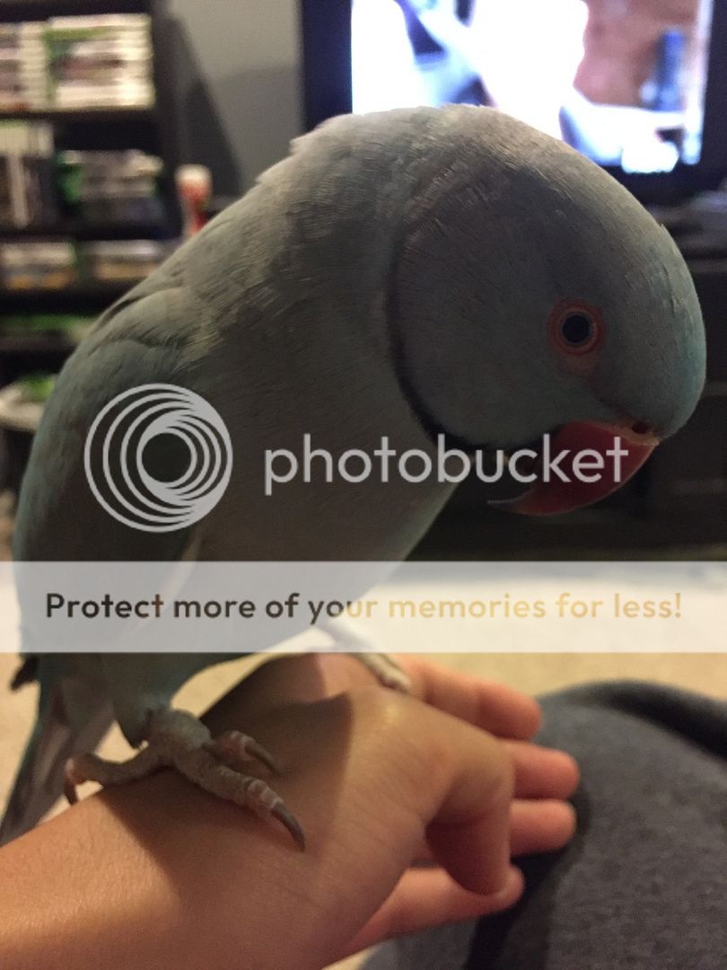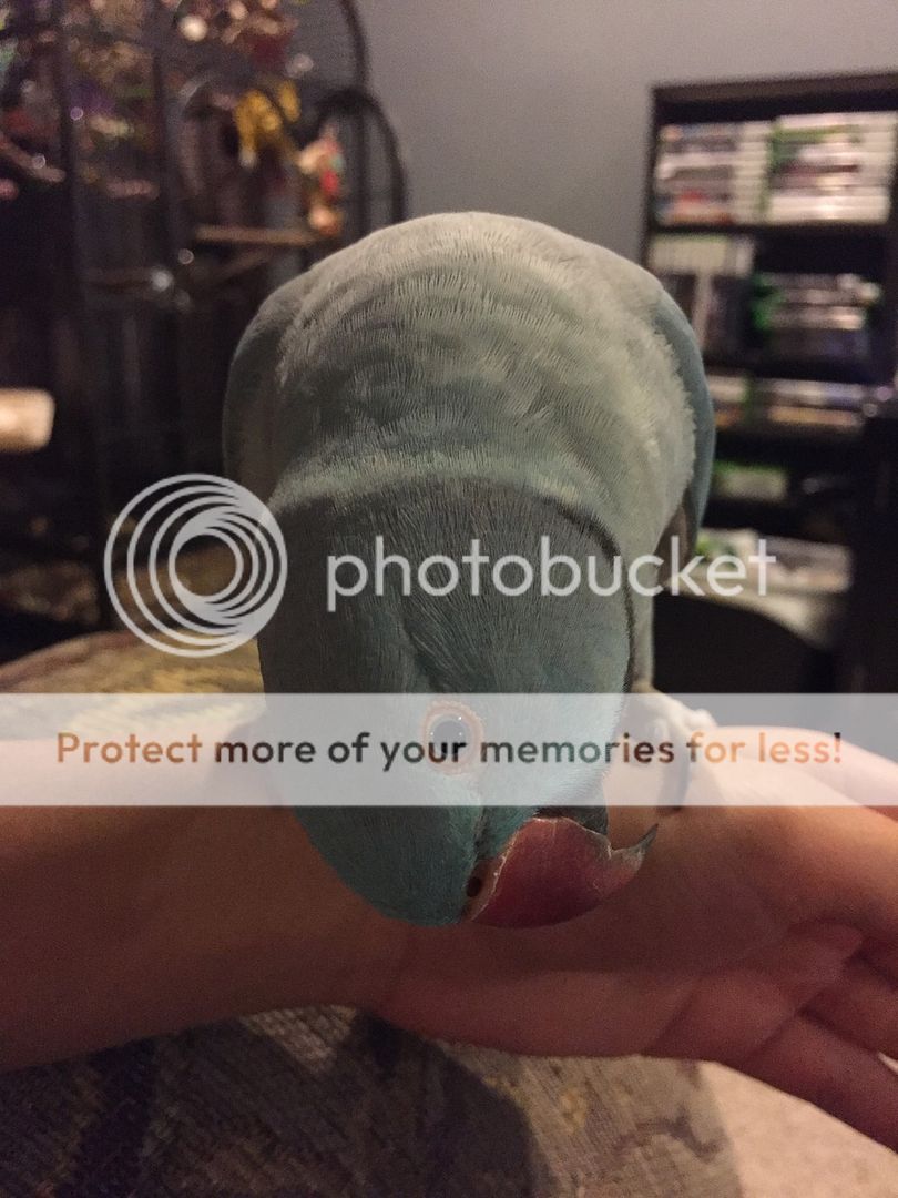 I'm so excited! When I came home today, I saw his first couple of black feathers showing! My little boy is growing up. He's just a month over a year and a half now, so I'm actually quite surprised his ring is coming in so early. But very, very ecstatic! He's going to look so handsome [emoji3]