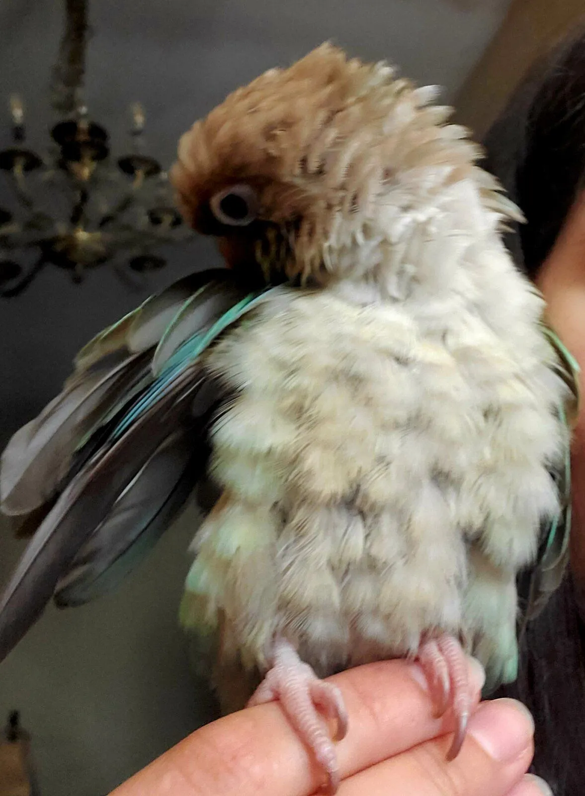 Vet appointment is scheduled for early mid November (first opening for a wellness check). I tend to pick sick animals ... I'm hoping she's healthy... I've been monitoring her and so far she's been showing health bird behavior with frequent naps (which I think is normal for a 5 month old bird?)