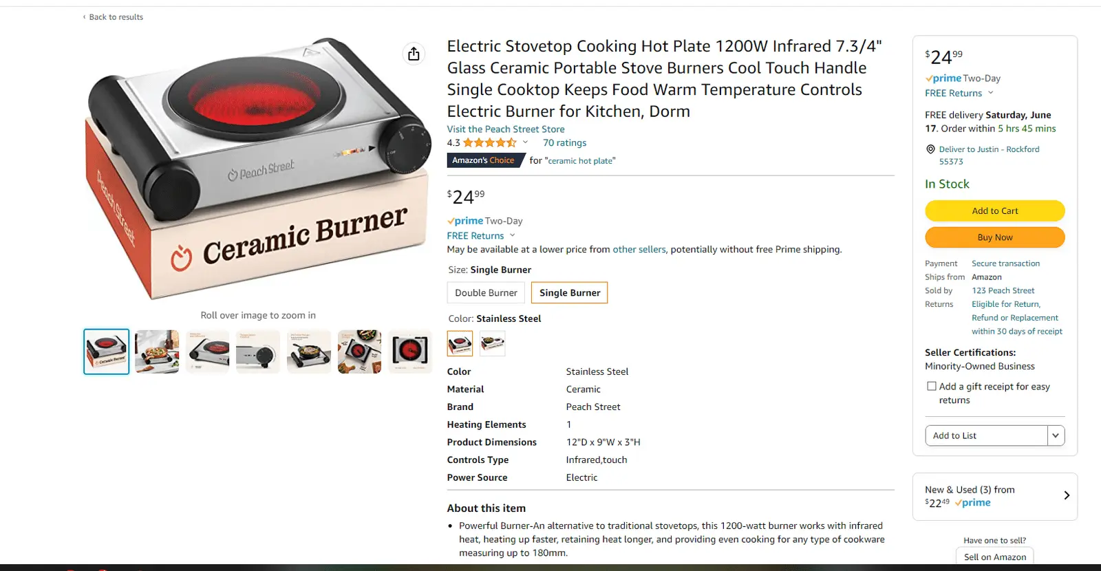 Yeah the one in photo… though I may end up getting another in the future if I can find a better one… but I was getting to the point where I just thought I’d cook on the fire pit outsideYes, something like the Cusimax is what I am looking for. I prefer the iron burner type over a glass top, but at this point I will take what I can get. The Amazon page for this one seems to have questions and reviews for both an iron burner type and glass top. May I ask which kind you have? The one in the photo I assume?