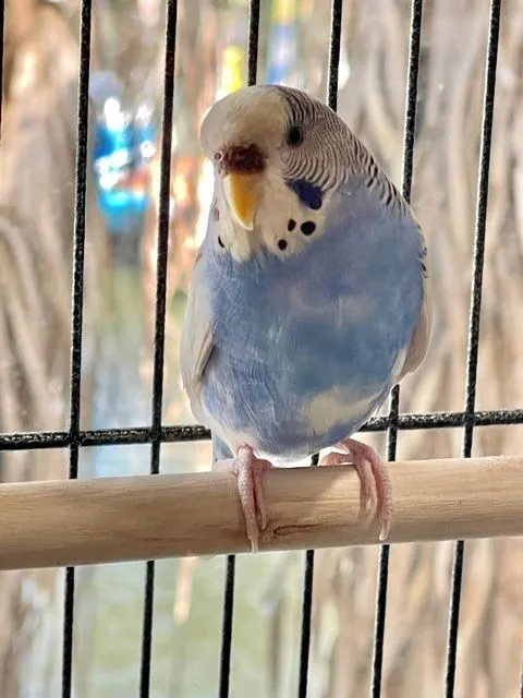 Stormy is possibly a recessive opaline. He has some blue patches where his white is supposed to be, one right on the top of his fluffy head!