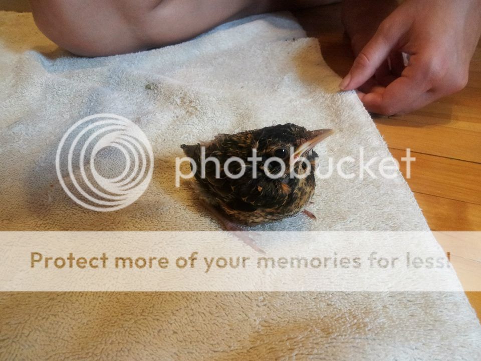The american robin, found while taking a walk. No nest in sight, no parents attacking me. I didn't want to leave it to die.