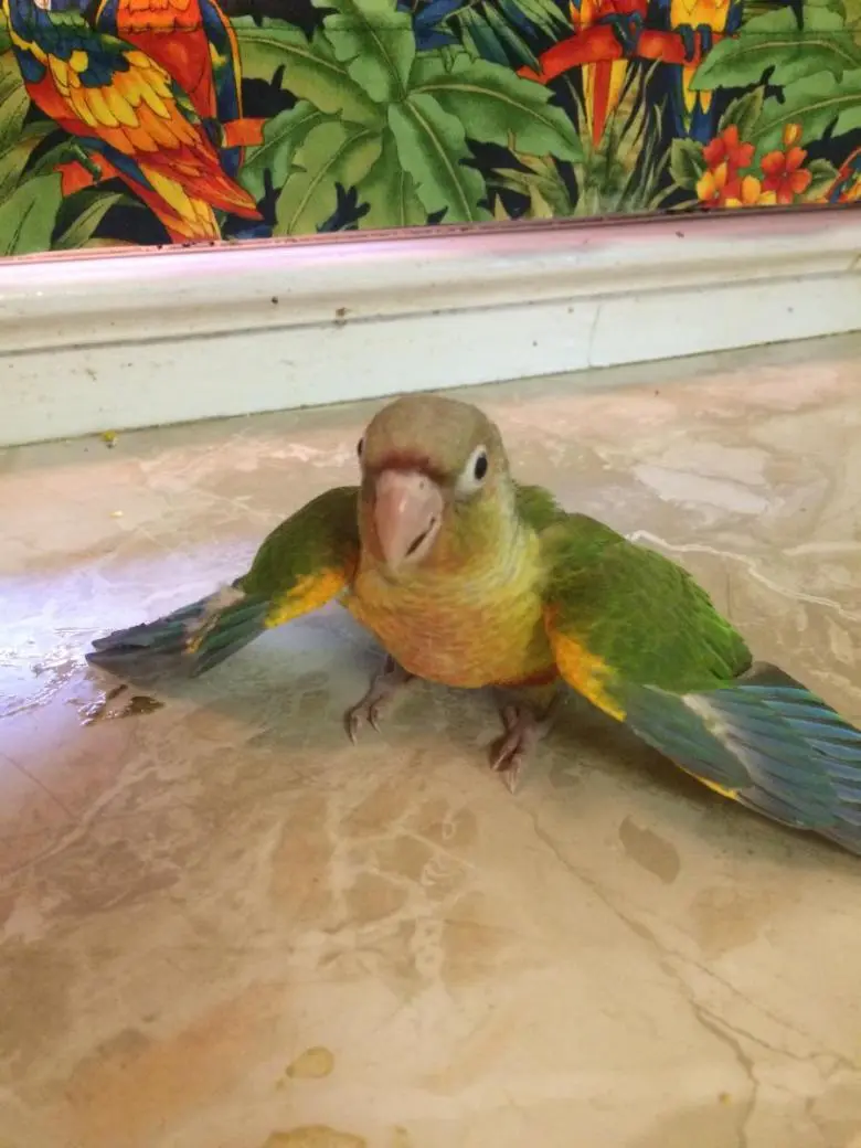 Indy is almost a year and a half now and she is doing great! She's healthy as can be, loving, and of course, loud like all happy suns are lol. I had a cinnamon GCC named Maui before her that my husband and I were absolutely in love with and we still miss her. I've had my eye out for the possibility of getting another GCC and it just so happens that Maui's parents had another clutch recently and I met one of the babies last weekend that made me have that same feeling as when I met Maui for the first time. This baby is a cinnamon also but with pineapple and lots of red...such a gorgeous baby! I let Indy meet the 2-3 month old baby and she was very sweet and groomed her gently while the baby was buried in my hair the entire time I was at the shop (and hour and a half). I need some advice on what to expect with a multiple bird home. They will not be housed together, and I will get the baby DNA sexed. I want Indy to have someone to talk to and to be on her level with her. She seemed so happy hanging out with the baby and I loved seeing that side of her. I very much want to be prepared and I already have a zoo (Wheaten terrier, 40 gallon reef tank, Panther chamelon and Indy the sun conure). Any helpful input would be appreciated!
