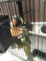 Looks like a rainbow lorikeet. Hard to tell because the colours in the photo are so washed out, but the markings coincide.