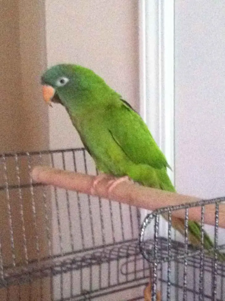 I have just inherited a 2yr old Blue Crowned Conure from my mother-in-law named Ricky (maybe Ricki). I was trying to learn some of its background and found that Ricky has had 5 different homes. There was not much more info to be given. Ricky does not bite and talks to me and my wife alot. However, he/she will "step up" but immediately "turns and burns" back to the top of his cage.