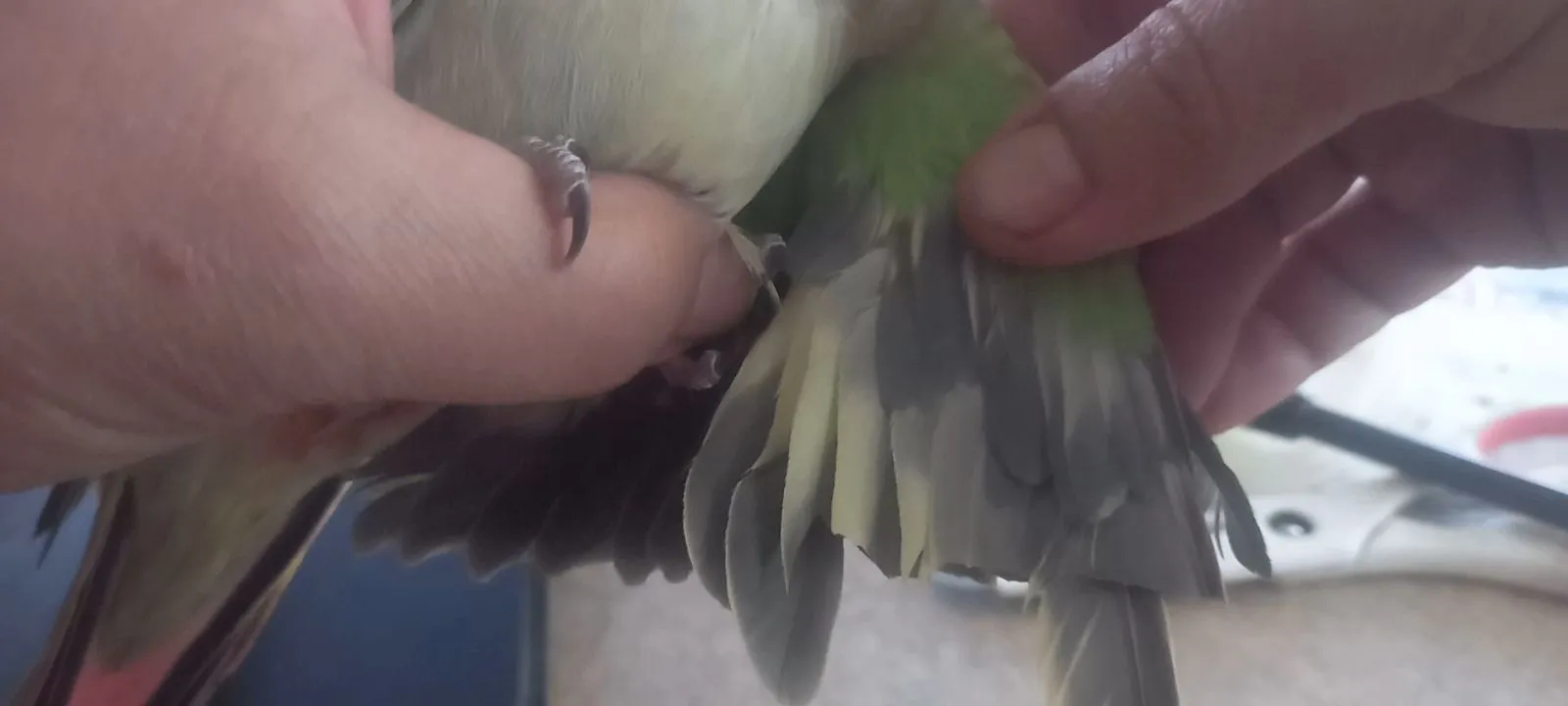 Well, speaking with all of the vast expertise that I've gained in the last 8 months of having been owned by a princess parrot, I can absolutely definitely categorically say that that maybe might possibly perhaps be a spatulaIt may be wishful thinking but I think I can see a spatula feather coming through and you know what that means. It's hard to get a picture of but have a close look at the feather growing on the edge...
