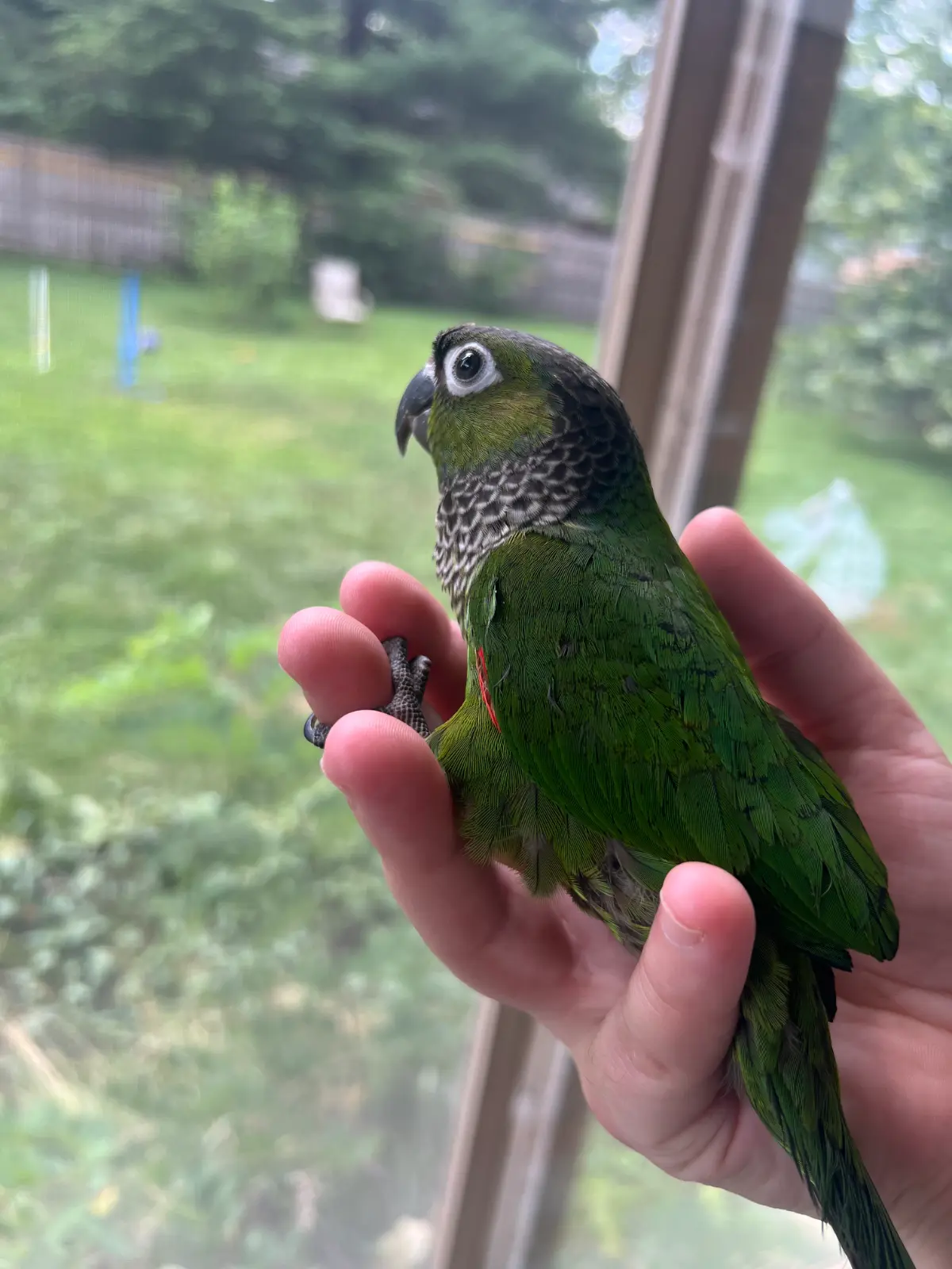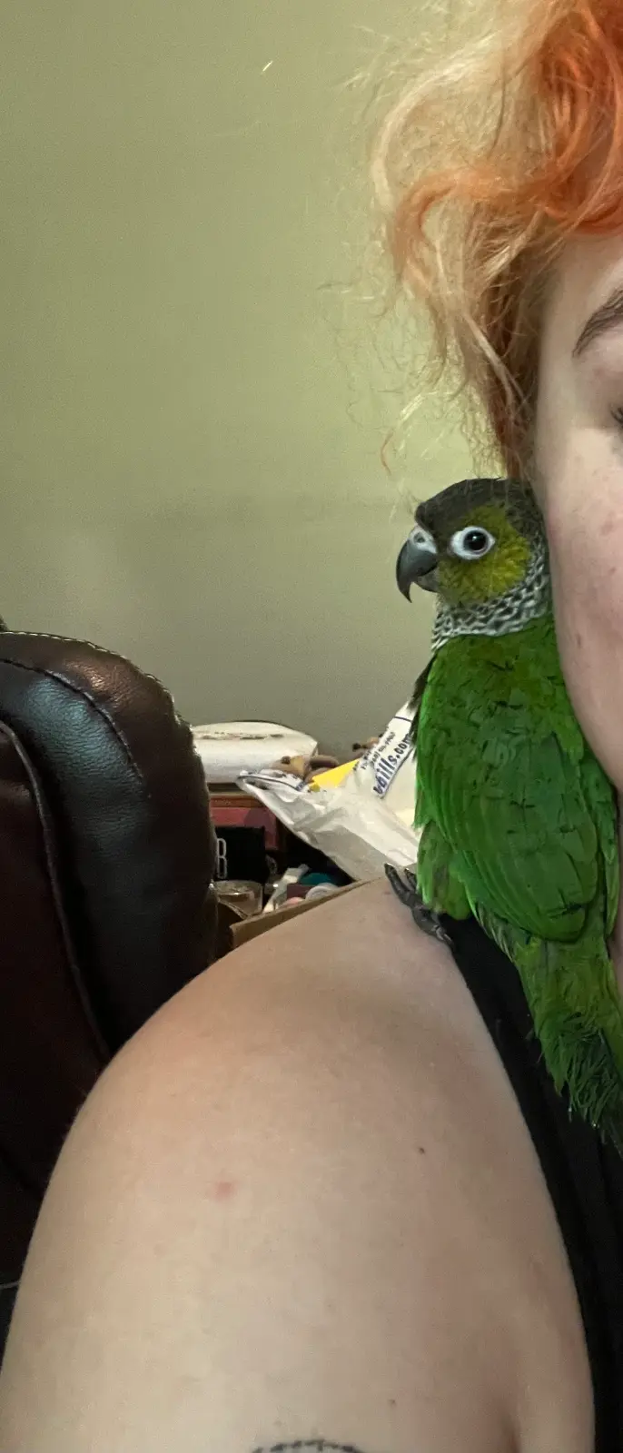 Ona actually heard Yuri this morning and it was funny and cute. It startled her. She flew up and then to me and then started doing her excited purr. She definitely knows it was another bird she heard.