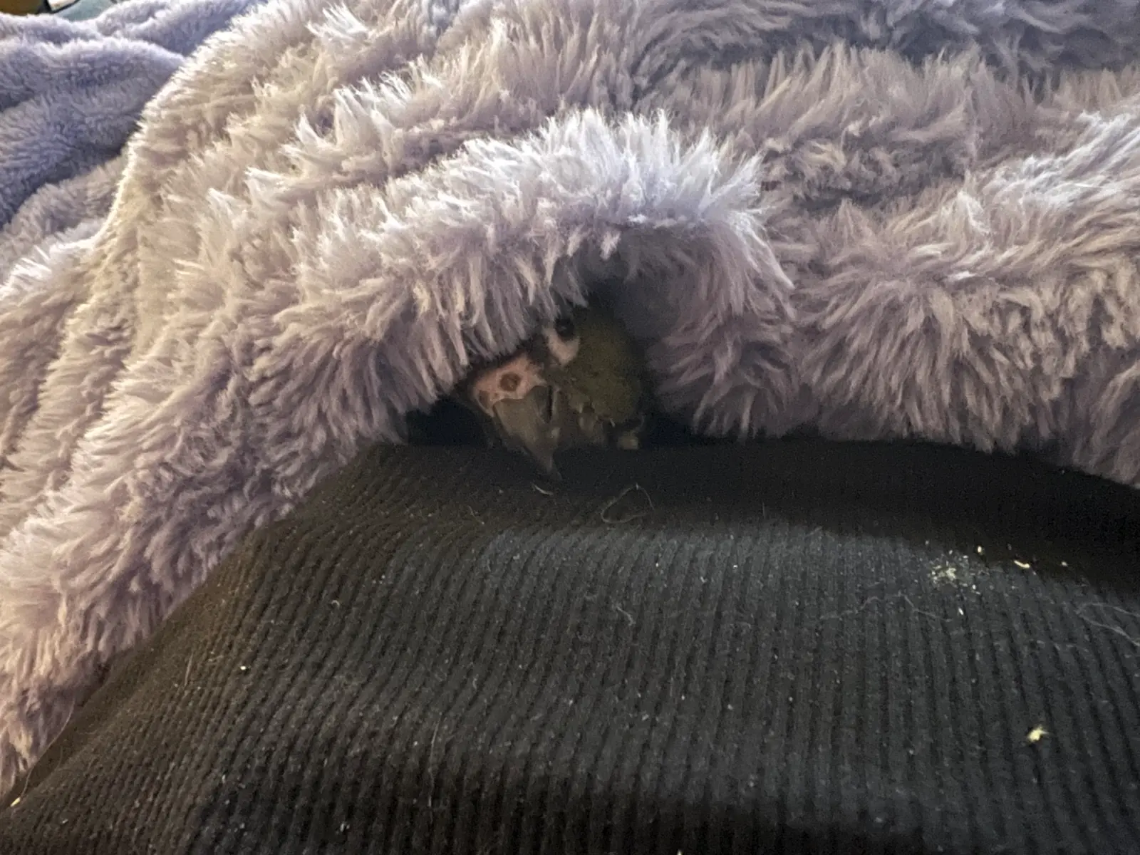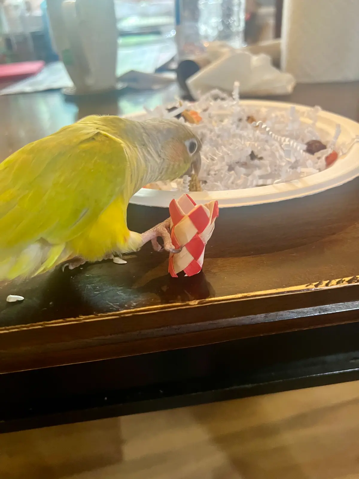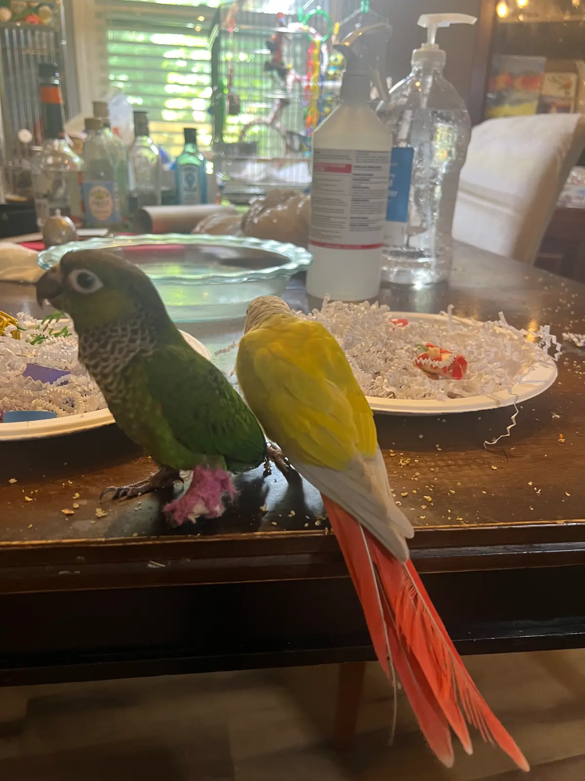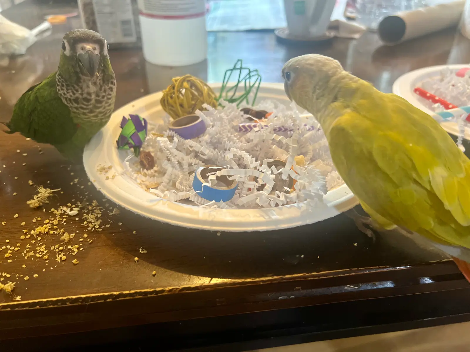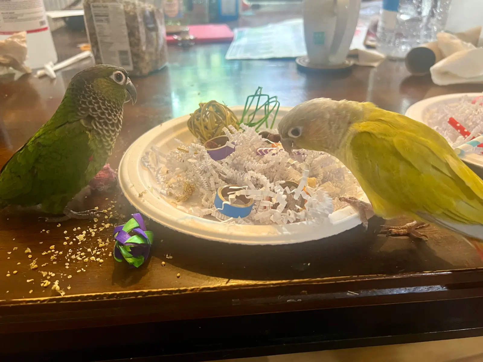 They loved it. Ona stole food right out of Yuri’s beak! Meanie butt.