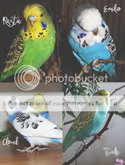 Cloud | Male | American Budgie | Rescue | Adopted March. 30 2016 | Current Age Approx 7-8 months | Was left mostly alone in a basment for a few months before being rescue